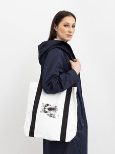 X.LAB has released a new tote bag with our winter 'Conscious' print. It is made of 100% cotton canvas. This bag has sturdy shoulder straps and a large main compartment with a heavy weight of 320 GSM.