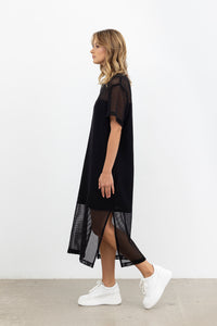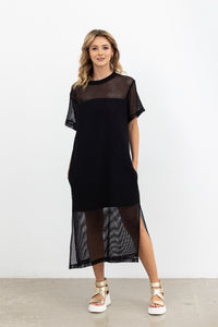The Snapshot Chic Dress is an effortlessly modern midi layering piece in 100% cotton open-grid mesh with a soft cotton slip lining for just the right amount of coverage. Its relaxed, tee-inspired silhouette features a classic crew neckline, dropped shoulders and short sleeves that flow into a straight midi hem with side slits for easy movement.
